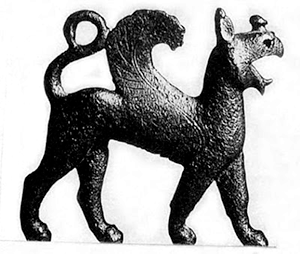 In Lewis Carroll's masterpiece, Alice's Adventures In Wonderland, the Queen brings Alice to meet a Gryphon asleep in the sun, then Carroll writes, "If you don't know what a gryphon is, look at the picture." What the reader of the first edition sees is one of the best known Gryphon pictures, seen to the left, drawn by John Tenniel. And so it has been throughout the centuries; the largely illiterate populace of the ancient world who could not read the description of a Gryphon by Ctesias, Pausanias, Aelian, et. al. are shown portrayals of the beast on vases, tombs, statues, seals and jewelry. If you are interested in how Gryphons are shown in today's media, then go to my Gryphon In Modern Media page. ![]() Susa gryphon, ca 3000 BC. |