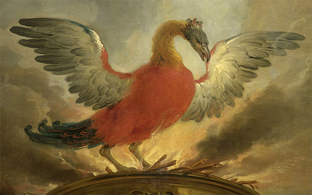 De vogel Phoenix, Cornelis Troost, 1720 - 1750 (cropped)